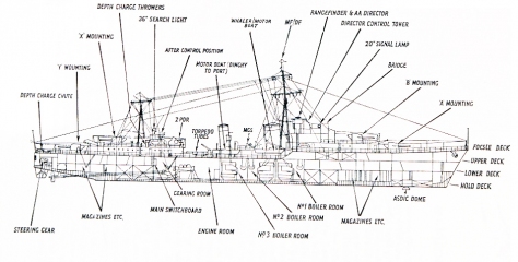 The Admiralty therefore decided that the next class of destroyer must be larger, thus providing a steadier platform for the extra guns that were needed to defend the fleet against torpedo attack by these big foreign ships. Their main armament was to be so designed that it could also be used to augment the antiaircraft defenses of the fleet. Torpedo armament was considered less important, while their anti-submarine capability was not given a very high priority. Admittedly this feature of their armament was superior to earlier classes, but perhaps it was felt that the comforting use of asdic would guarantee the defeat of any under water menace. The new class would not be expected to carry out either high-speed mine-sweeping or mind laying