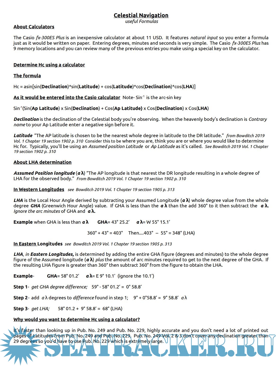 provides a clear arrangement of figures required for celestial navigation. He has also created