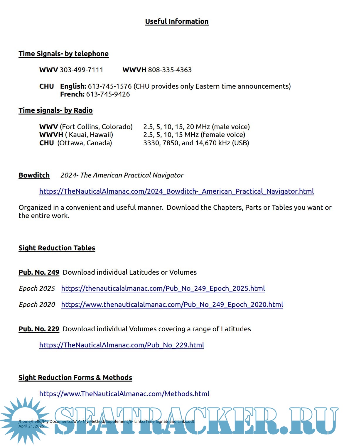 Description: The Nautical Almanac Daily Pages and Sun Almanacs found on our site were originally created