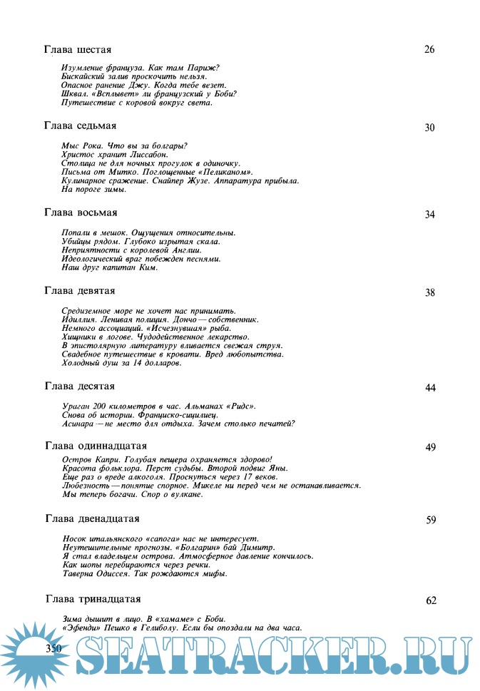 Описание: Известные болгарские путешественники Ю. Папазова и Д. Папазов рассказывают о своем кругосветном плавании на яхте «Тивия». В книге описывается также тренировочное плавание вокруг Западной Европы (из Польши, где была построена яхта, в Болгарию), предшествовавшее кругосветному путешествию (это часть книги написана С. Идакиевым)