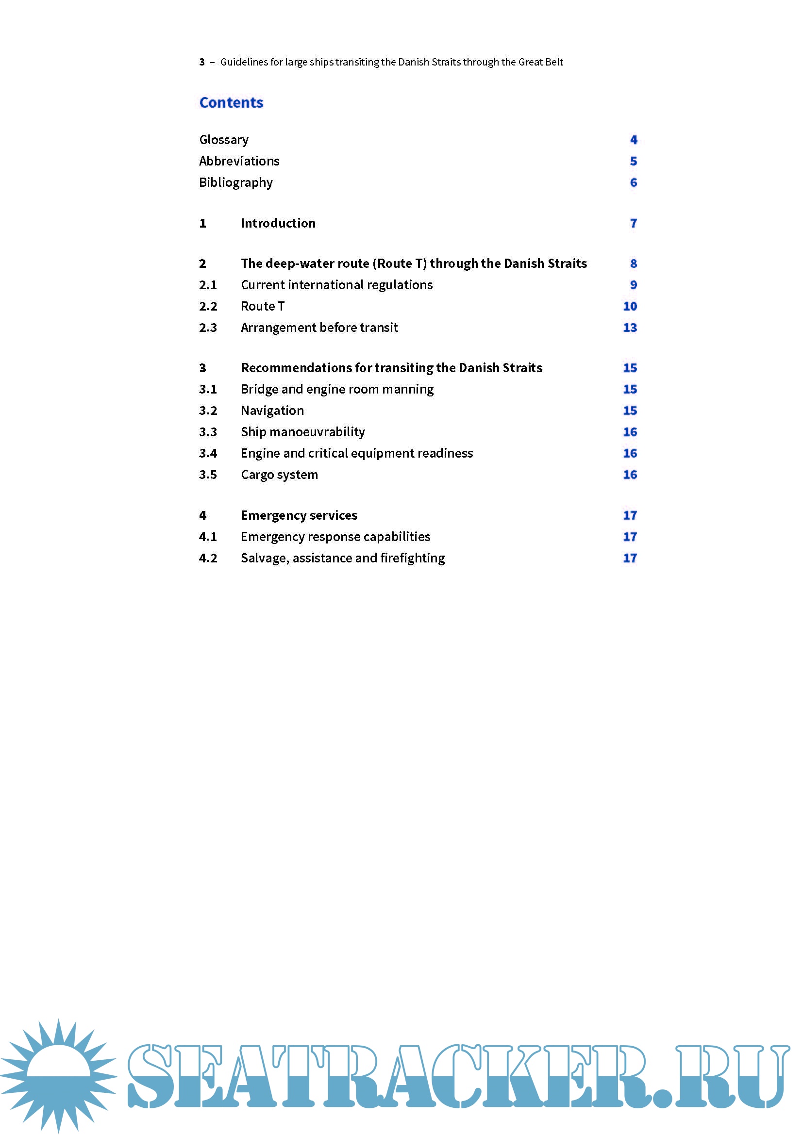 This paper provides additional operational and organisational guidance for ship operators in developing risk assessments for large ships transiting from Skagen to Bornholm (southbound) or Bornholm to Skagen (northbound) through Route T. Ships other than large ships may use other routes for the full transit, the details of which are out of scope of this paper. Operators of these ships should refer to the Passage Planning Guide, Baltic: Danish Straits (PPG) and guidance provided by the Danish Emergency Management Agency (DEMA). DEMA has recently taken over responsibility from the Danish Maritime Authorities (DMA) for regulation of pilotage, IMO Route Systems, Notice to Mariners (MSI) and general safety of navigation within national waters.