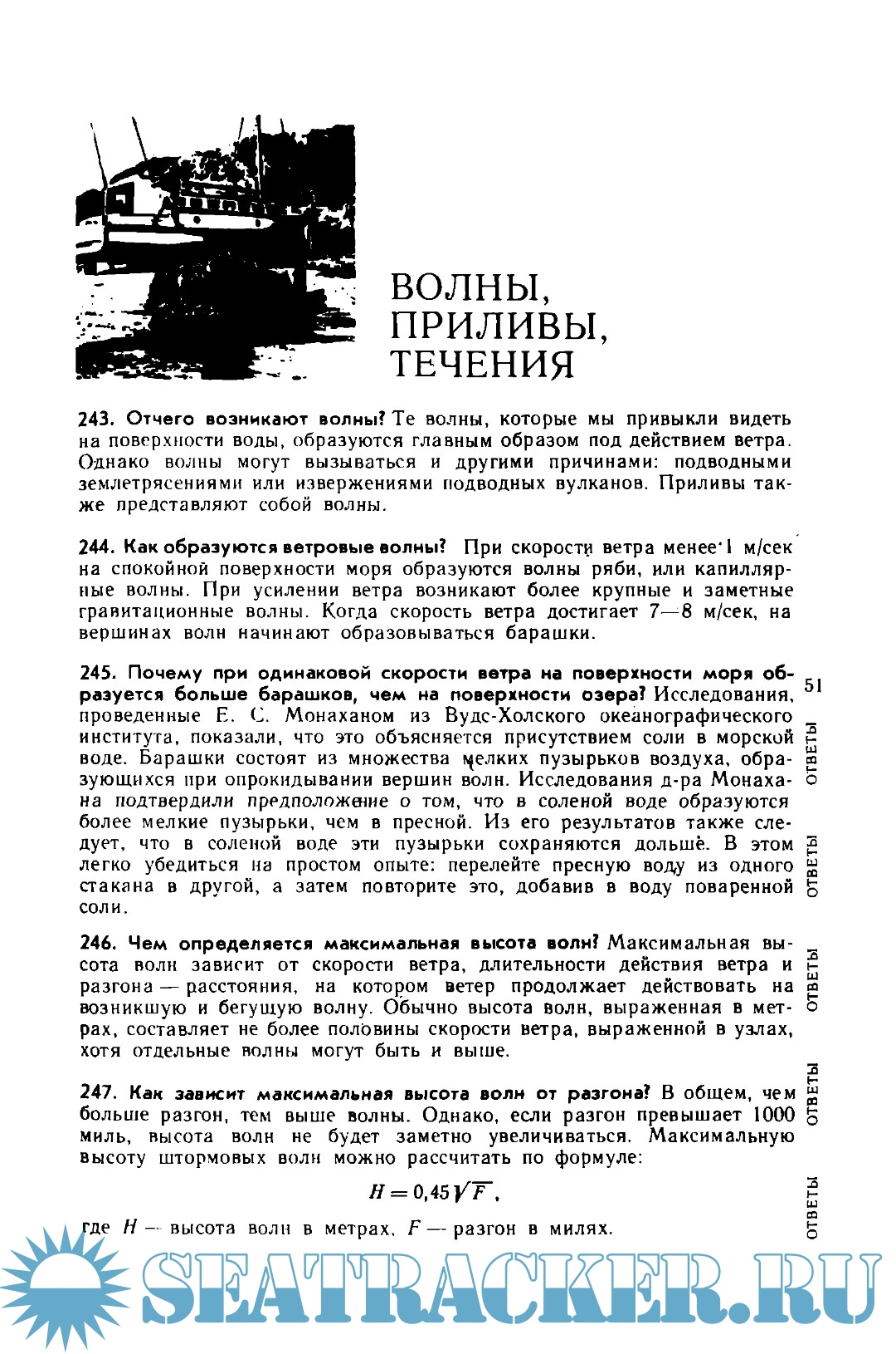 Книга „1001 вопрос об океане" в общем отвечает своему прямому „микроэнцимопедическому"' назначению, она представляется довольно удачной и интересной по стилю. Использование формы „вопрос — ответ" придает книге непринужденный характер не слишком обязательной беседы.
