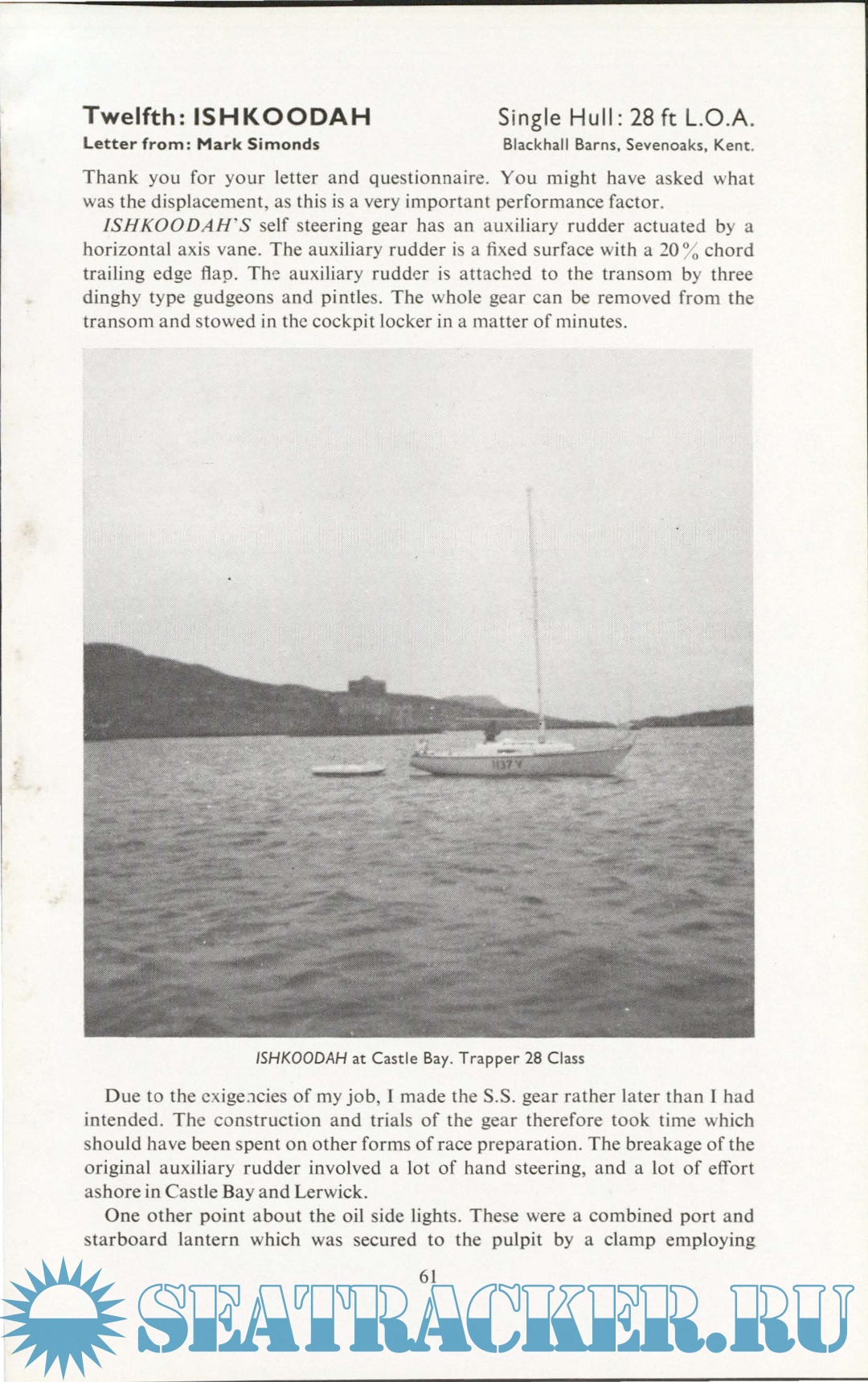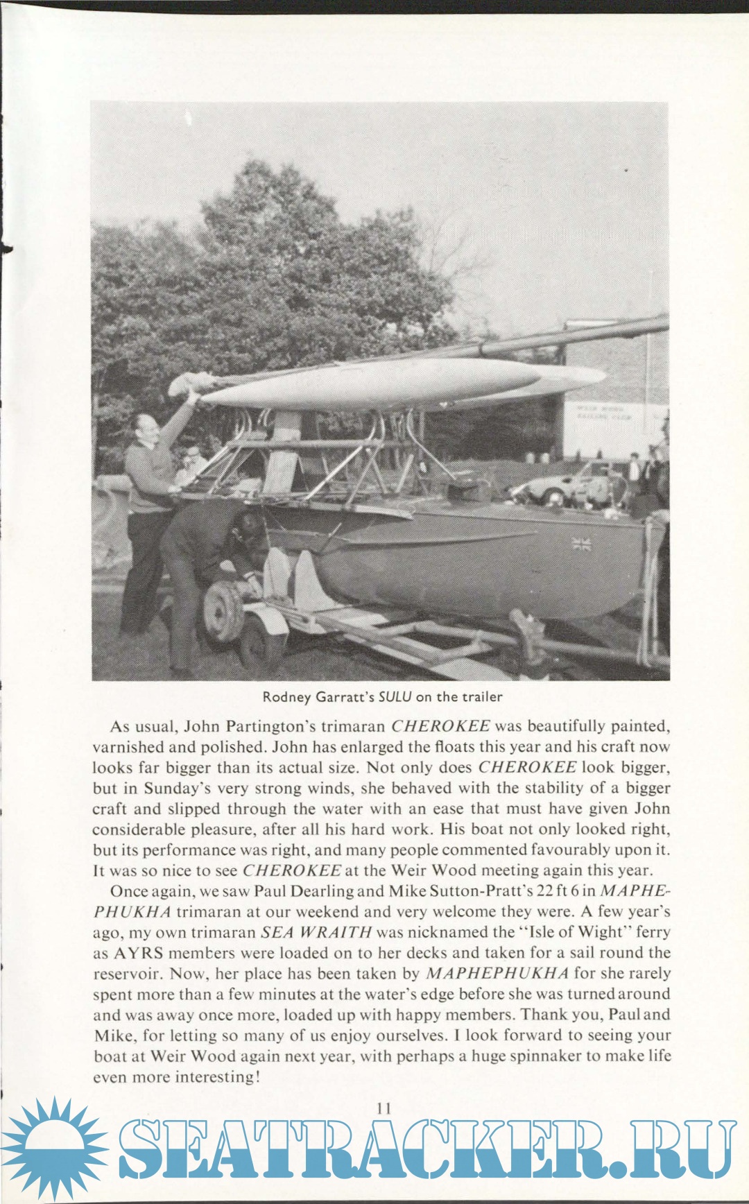 Год выпуска: 1971 Язык: Английский Автор: A.Y.R.S. Жанр: Периодическое издание Издательство: A.Y.R.S. Формат: PDF Качество: Отсканированные страницы Количество страниц: 96 Описание: The AYRS is a UK registered Educational Charity (No 234081) dedicated to finding out how to make yachting better (faster, more fun, whatever you want it to be). Our members run from sober sided professional yacht designers and builders to bearded eccentrics full of ideas that they cannot make work.From our members have come the modern sailing multihulls, self-steering gear, sailboards, a flock of successful sailing hydrofoils, the World Speed Sailing Record system, etc. Now people are taking off with kiteboats and autogyro-sails, and the first amphibious bicycle.